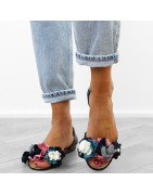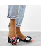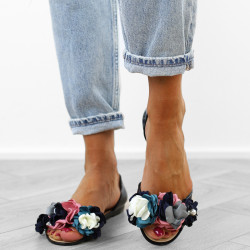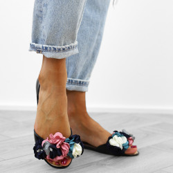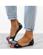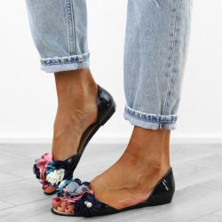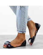 Czarne baleriny wsuwane lekkie gumowe meliski z kwiatami