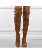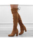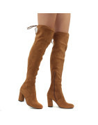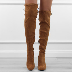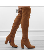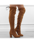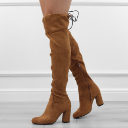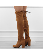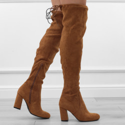 Brązowe kozaki damskie klasyczne eleganckie na obcasie słupku zamsz