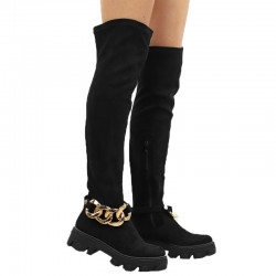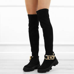 Beżowe kozaki damskie zamszowe wysokie muszkieterki płaskie łańcuch