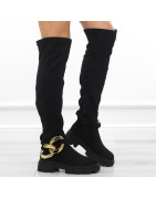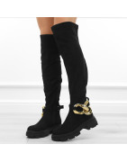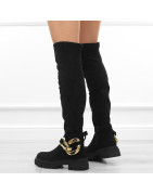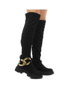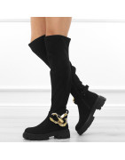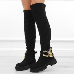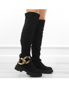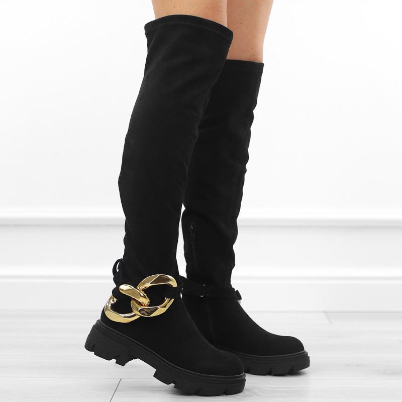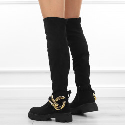 Czarne kozaki damskie za kolano elastyczne muszkieterki zamsz łańcuch