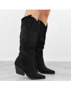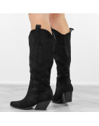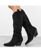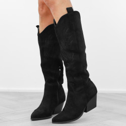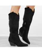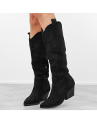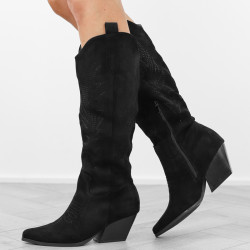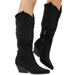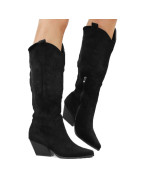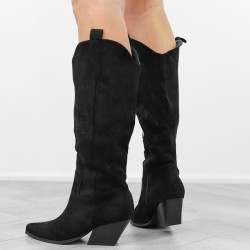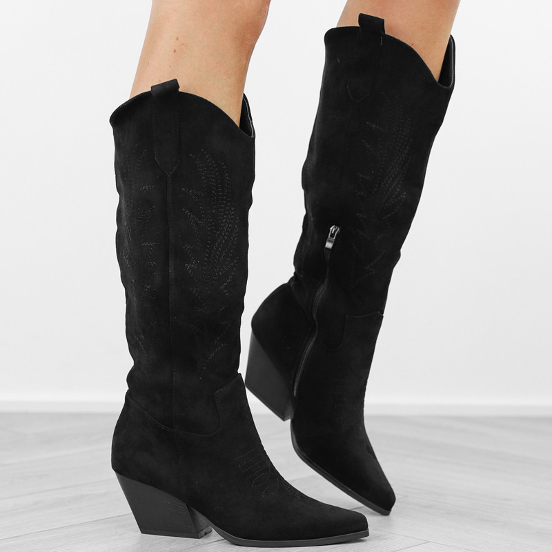 Czarne kowbojki damskie na obcasie słupku wygodne kozaki w szpic