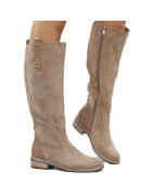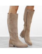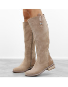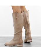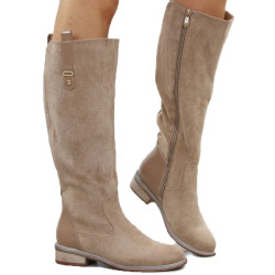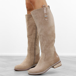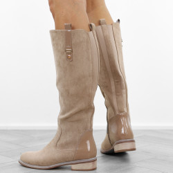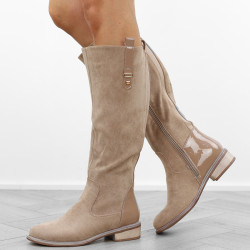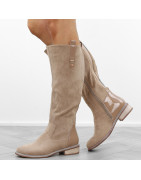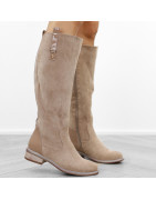 Khaki beżowe płaski obcas kozaki damskie ocieplane eleganckie oficerki zamszowe
