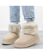 Brązowe khaki botki śniegowce damskie ocieplane niskie mukluki futerko zamsz