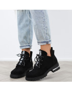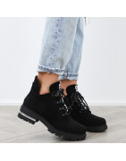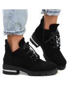 Czarne botki damskie zamszowe ocieplane trapery na płaskiej podeszwie workery