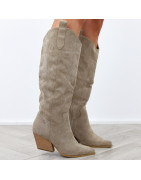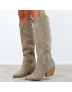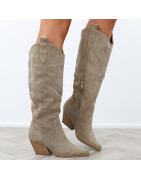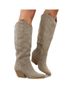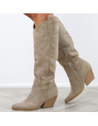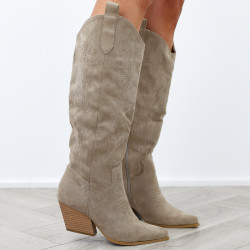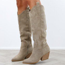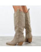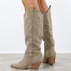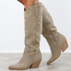 Beżowe kozaki damskie wysokie kowbojki pod kolano wygodne na zamek